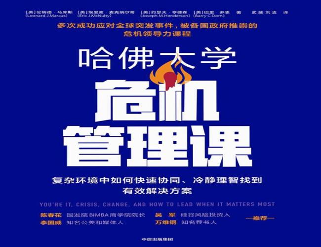 - 总之,《哈佛大学危机管理课》提供了一套系统而实用的危机管理知识体系。无论是企业管理者还是公共部门的领导者,都可以从中获得宝贵的洞见和实用的工具,帮助他们在未来可能出现的各种危机挑战中更好地准备和应对。通过阅读这本书,读者不仅可以掌握危机管理的基本理论,还能学会如何将其应用于实际管理决策中,从而提高应对危机的能力和效率。