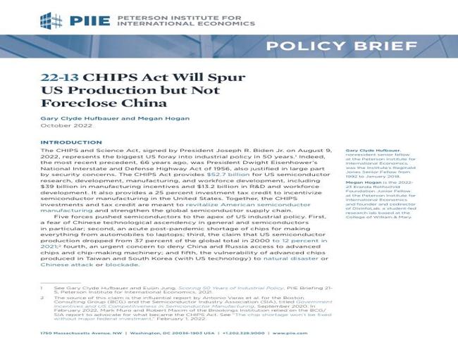 彼得森经济研究所-《芯片法案》将刺激美国生产,但不会阻止中国(英) 1.pdf