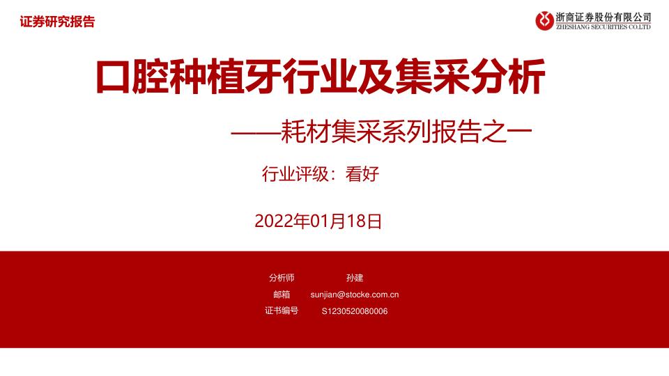 医药行业耗材集采系列报告之一口腔种植牙行业及集采分析