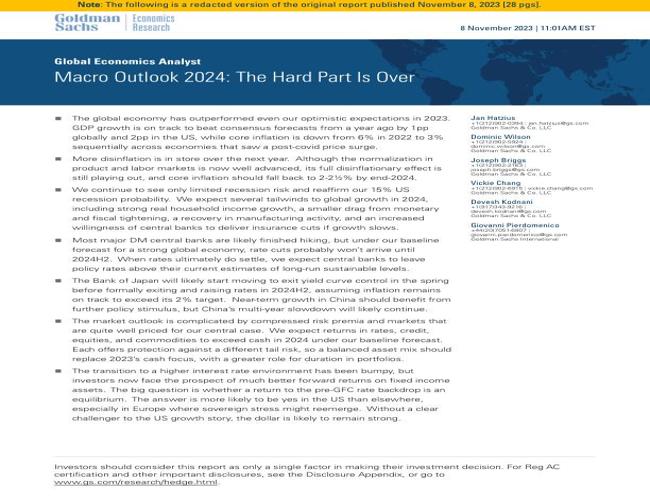 高盛-2024全球宏观经济预测:困难时期已经过去(英)-2023.11.8-28页 1.pdf