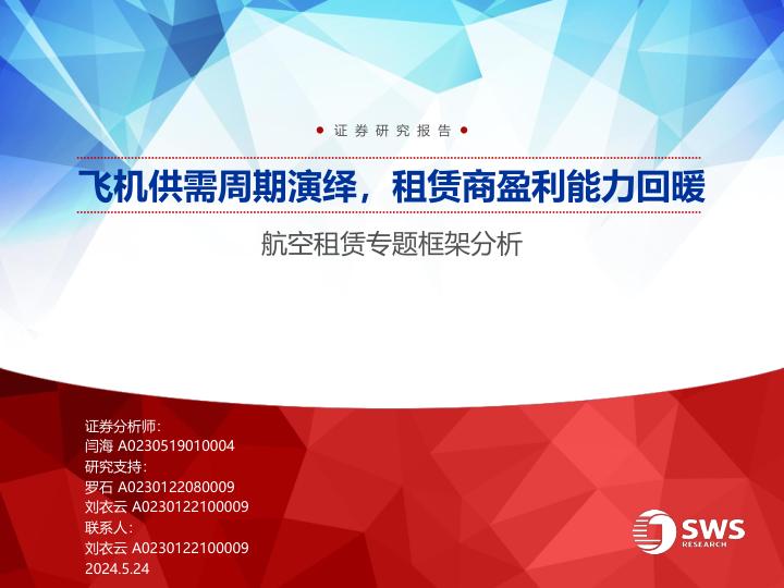航空租赁专题框架分析:飞机供需周期演绎,租赁商盈利能力回暖-申万宏源-2024.5.24-64页.pdf